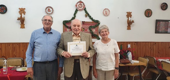 En la foto esta recibiendo el diploma enviado por el Panathlon International reconociendo sus 50 años ininterrumpidos en el movimiento panathlético, siendo al momento de su fallecimiento el panathleta mas antiguo de América, habiendo sido nuestro maestro y memoria viviente de lo realizado por el club Buenos Aires.