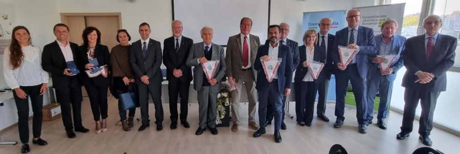 Il Past President internazionale Giacomo Santini consegna il certificato di nascita del primo club sloveno al promotore Miran Mullner, alla presenza del Governatore Paolo Perin.
