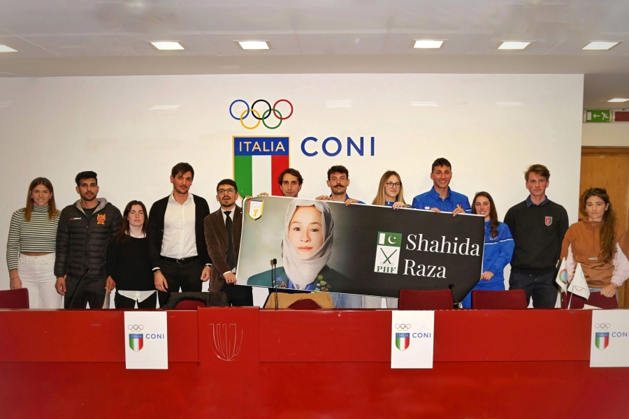 Nel ricordo di Shahida Raza, capitano della nazionale femminile di hockey su prato del Pakistan tra le vittime del naufragio di migranti avvenuto sulle coste crotonesi, si è svolto al Palazzo delle Federazioni un appuntamento speciale di “Pianeta Olimpia: i valori dello sport raccontati dai campioni”, la rassegna organizzata dal Panathlon International Club Junior Roma per promuovere l’etica e la cultura sportiva tra i giovani. All’incontro, moderato dal presidente del Club Lorenzo D’Ilario, hanno partecipato la vice campionessa olimpica e mondiale in carica argentina Victoria Granatto, i nazionali azzurri Davide Arosio e Luca Valentino, l’arbitro internazionale Kamilė Mockaitytė e gli atleti Teun Kropholler, Luca Settimi, Sami Ullah, Giulia Bianchini, Beatrice Martinetti, Rocío Maldonado e Mercedes Campana. Tra i saluti istituzionali quelli del presidente nazionale della Federazione Italiana Hockey, Sergio Mignardi, e del consigliere dell’Assemblea Capitolina, Giorgio Trabucco, oltre ai dirigenti delle società Butterfly Roma, HC Roma, UH Capitolina e Libertas San Saba. Tante le tematiche affrontate, a cominciare dal rispetto, dall’integrazione e dallo spirito di amicizia, solidarietà e fair play che contraddistinguono l’hockey su prato, attraverso il confronto e lo scambio di esperienze tra gli atleti e i numerosi studenti e giovani professionisti dello sport presenti all’iniziativa, che ha visto il patrocinio dell’Assessorato allo Sport di Roma Capitale, del CONI Lazio e della FIH. Inoltre, pochi giorni dopo l’evento, lo striscione commemorativo dedicato a Shahida Raza ha accompagnato l’ingresso in campo delle squadre Butterfly Roma e Cus Torino nella prima giornata del campionato femminile di Serie A Élite, la massima divisione nazionale. A farsene carico il capitano della società romana Agnese Grossi che, come il centrocampista Arosio, è socia del Club Junior di Roma. “Siamo davvero felici che il nostro convegno sia subito sfociato in un gesto di cordoglio e vicinanza fortemente voluto da tante giovani atlete e condiviso da tutta la comunità sportiva”, ha dichiarato il presidente D’Ilario.