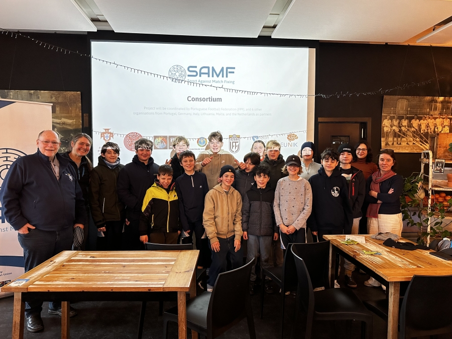 The coaches were also present and parents were also invited but that only gave a meagre turnout, which was a pity. We gave them some examples from rowing where match fixing can also be done at a lower level. They were very attentive and asked quite a few questions, which is of course a good thing. They also liked the videos and watching the comic strip on their mobile phones via the QR code.