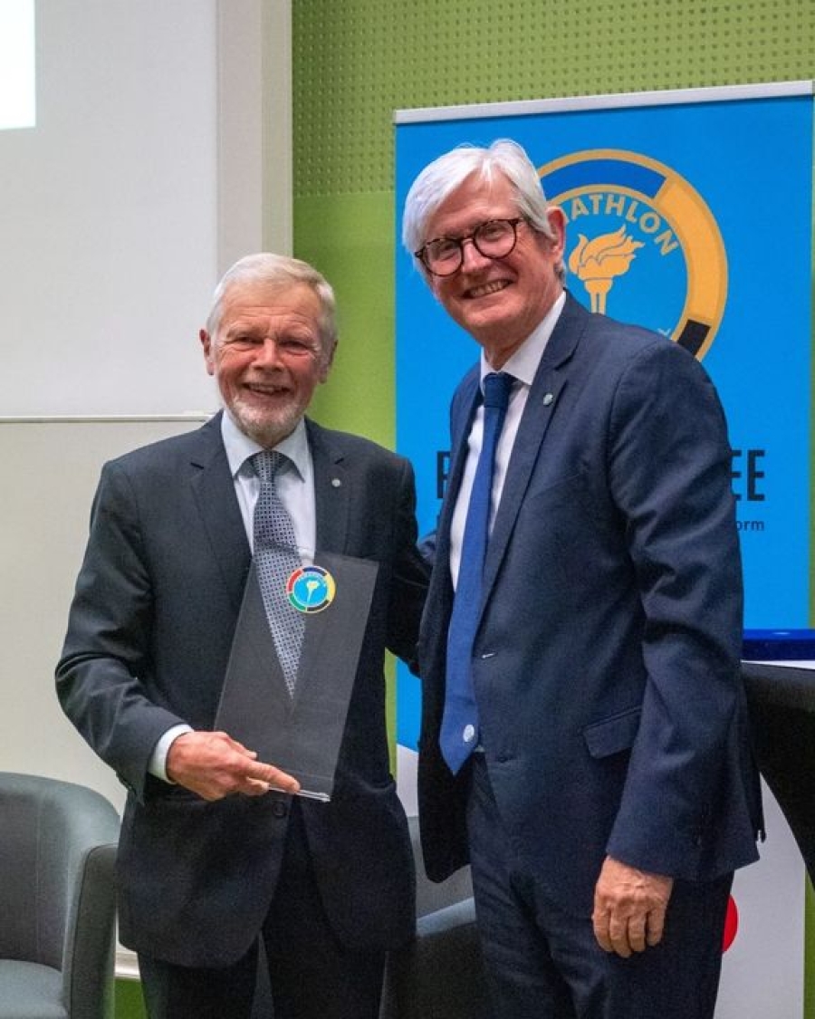 Photo: On the left, Prof. Dr. Francis Van Loon, honored as the Panathlon Antwerp Sports Personality, stands alongside Paul Standaert, President of Panathlon Belgium.