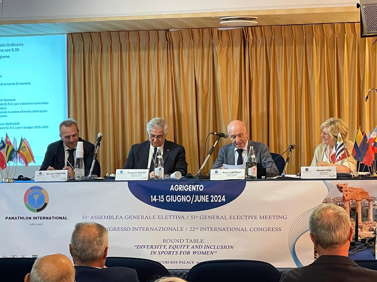 La 51e Assemblée générale ordinaire élective du Panathlon International et le 22e Congrès international intitulé "Diversité, équité et inclusion dans le sport pour les femmes" ont eu lieu les 14 et 15 juin 2024 à l'hôtel Dioscuri Bay Palace d’Agrigente.