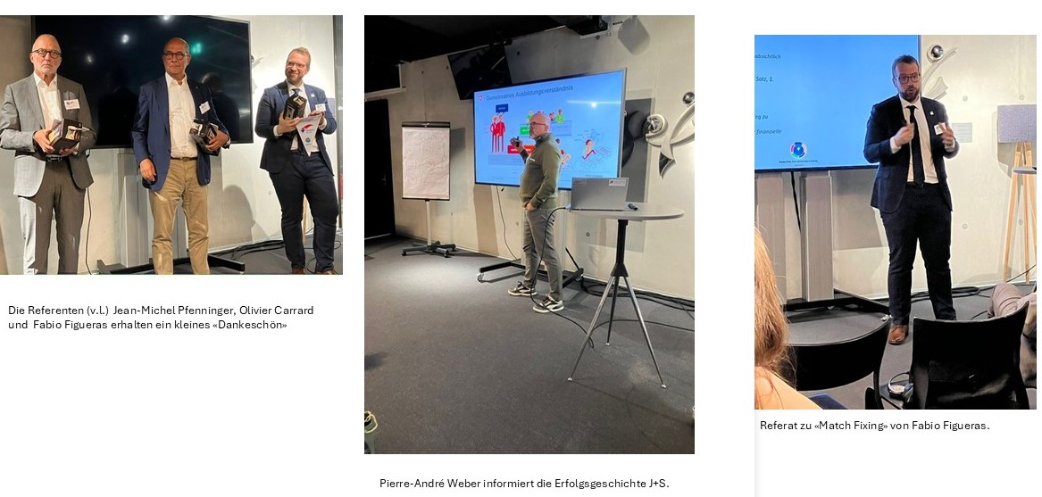 Fabio Figueras, Mitglied der «Cultural, Research and Educational Commission» von Panathlon International, hat sich intensiv mit «Match Fixing», dem Kampf gegen Spielmanipulationen beschäftigt. In seinem Referat zeigte er auf, dass nicht nur in den mit viel Geld dotierten Sportarten Fussball, Tennis oder Eishockey, sondern in sehr vielen anderen Sportarten Spiele oder Resultate durch Bestechung von Spielern oder Funktionären manipuliert worden sind. Mit viel Engagement und originellen Ideen wird gegen dieses unethische Verhalten vorgegangen, werden Sportlerinnen und Sportler aufgeklärt und gewarnt. In den nächsten Wochen wir diese Präsentation auf der Website www.panathklon-suisse.ch aufgeschaltet werden, so dass sie allen Clubs zur Verfügung stehen wird.