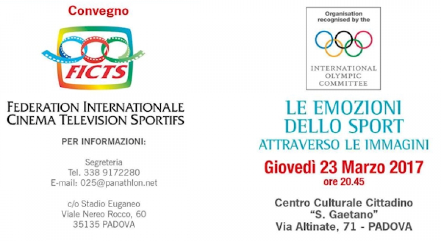 Jeudi 23 mars, au Centre Culturel San Gaetano à Padova, aura lieu la Conférence annuelle organisée par le Prof. Zanovello, Past-Président du Panathlon Club Padova, sur le thème "Le emozioni dello sport attraverso le immagini" (les émotions du sport à travers les images).