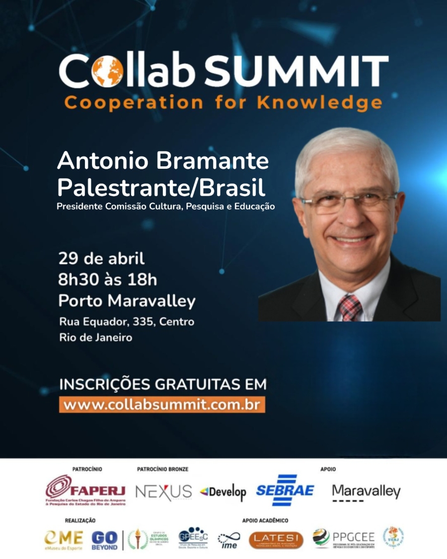 Il Panathlon International, attraverso il Presidente della Commissione per la Cultura, Ricerca e Educazione,  Antonio Carlos Bramante, ha partecipato (online) all'Evento legato alla generazione di conoscenza, all'innovazione e alla cooperazione chiamato "Collab Summit", che si è tenuto nella città di Rio de Janeiro martedì 29 aprile.