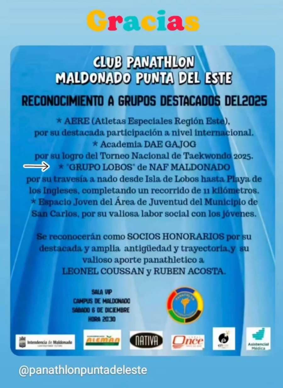 El sábado 6 de diciembre, en la Sala VIP del Campus Municipal de Maldonado, el Club Panathlon Maldonado Punta del Este realizará su cuarta edición de reconocimientos a Grupos Destacados de Maldonado 2025.