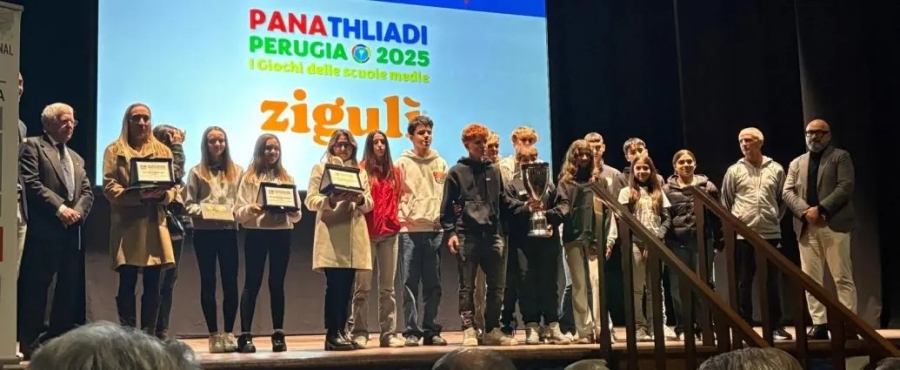 Gli attestati “Stagione d’Oro 2024-2025” a Margherita Castellani della Atletica Arcs Cus Perugia e alla Sir Sicoma Monini Perugia. I trofei intitolati a “Giorgio Bottelli campioni dello sport” (uno dei fondatori del club nel 1955) a Domenico Ignozza ex presidente CONI Umbria e a Simone Giannelli capitano della nazionale di volley e della Sir Susa Scai Perugia. Il Trofeo “Giorgio Bottelli-Fair Play” nel giornalismo sportivo è assegnato a Franco Bragagna, storico telecronista RAI di atletica e di altri sport premiato dal direttore del Corriere dell’Umbria Sergio Casagrande. La conclusione del Panathlon Day 2025 ha visto sul palco la scuola media Perugia 9 M.Hack di San Martino in Campo vincitrice della prima edizione delle Panathliadi Perugia 2025 svoltesi nello storico stadio Santa Giuliana di Perugia.
