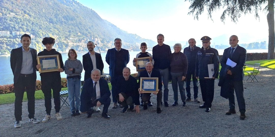 Il premio è stato consegnato da Alessandro Saladanna con la zia Giovanna e dall’Assessore Regionale Fermi – presente anche il Sindaco di Olgiate Comasco Simone Moretti – , al prof. Pablito Novati accompagnato da un allievo e un’allieva.
