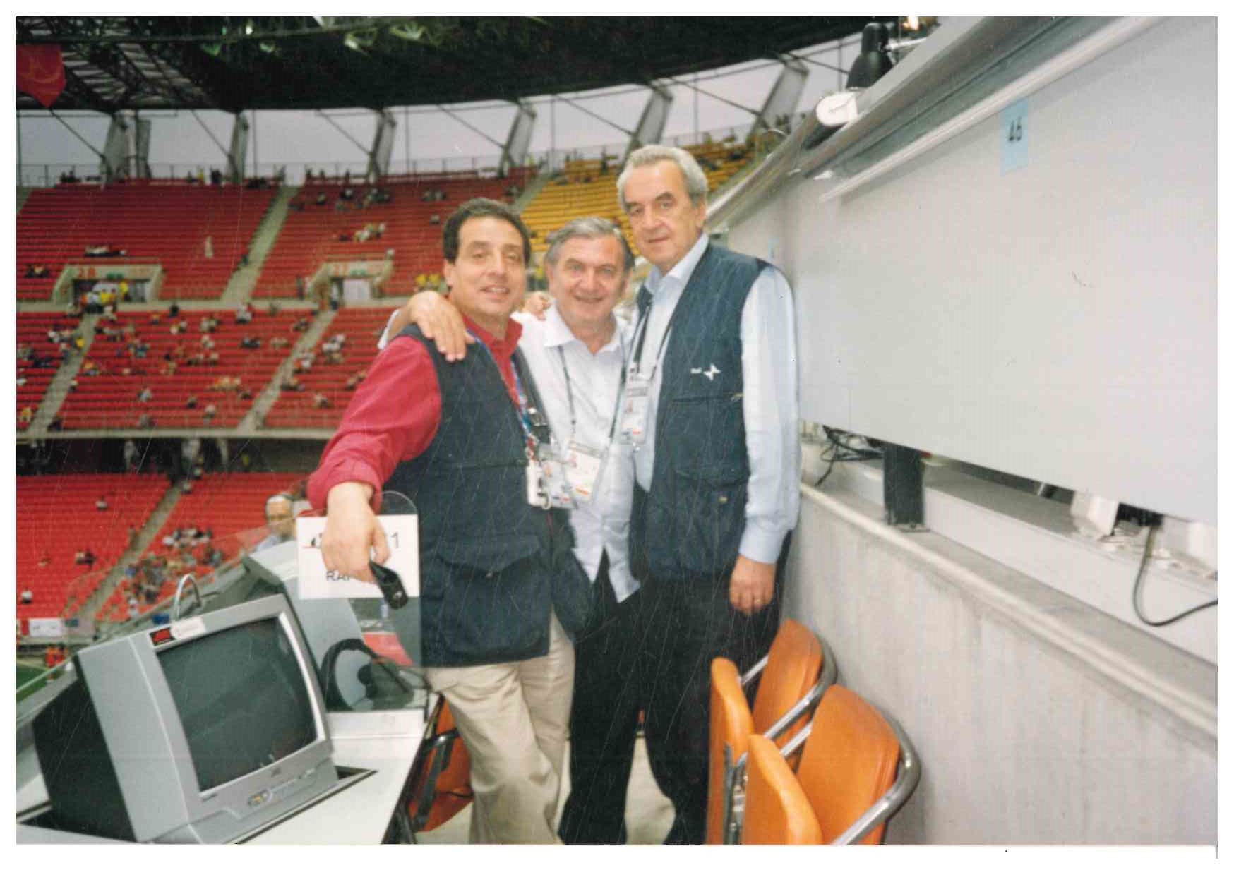 Mondiali del 2002 in Giappone e Corea : Bruno Pizzul con Tonino Raffa. al centro Giacomo Bulgarelli