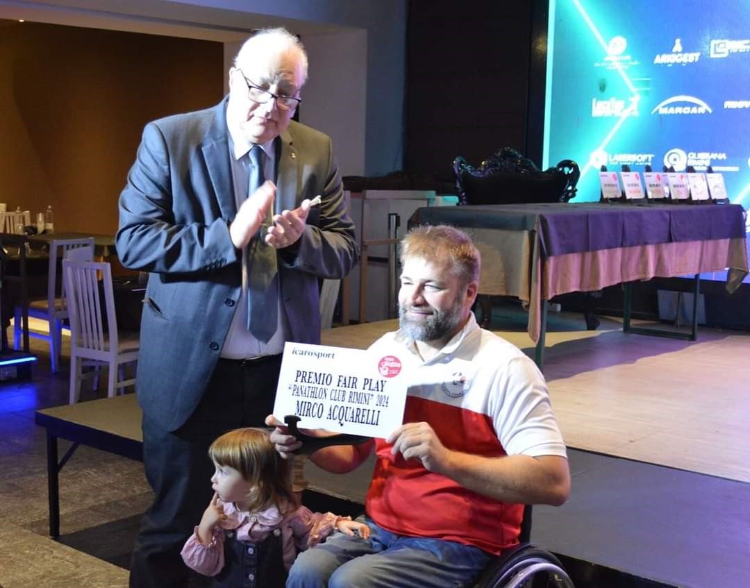 Per il terzo anno consecutivo il Panathlon, ha consegnato il premio Fair Play che quest'anno, il Consiglio Direttivo, ha assegnato all'atleta Mirco Acquarelli Team Manager e componente della squadra di basket in carrozzina Rimini Riviera, con la seguente motivazione :