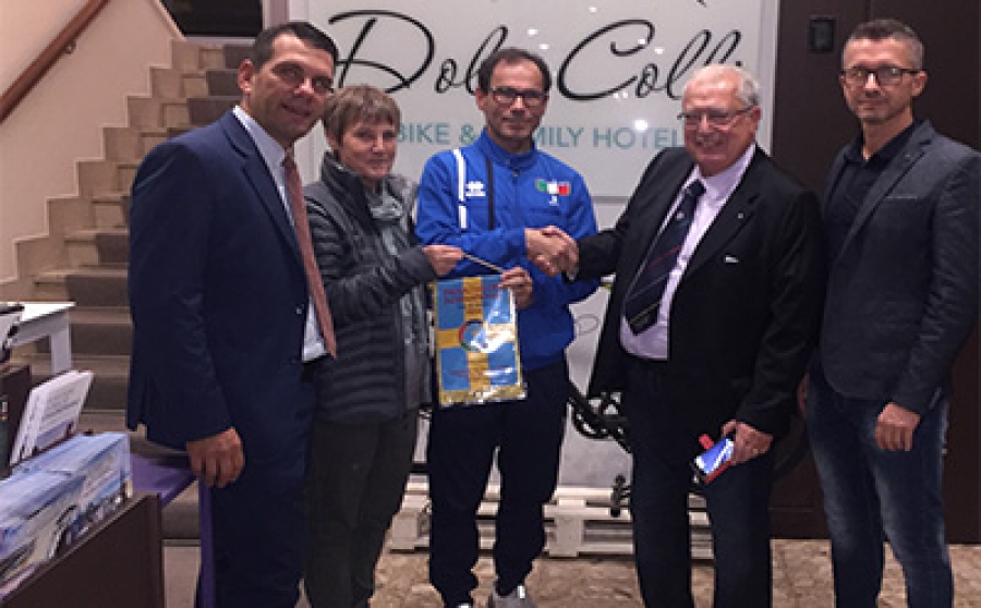 In occasione del Campionato mondiale di ciclismo su strada, che si sta disputando a Bergen in Norvegia, una delegazione del Panathlon Club  Verona 1954 ha portato il proprio saluto augurale al Commissario Tecnico Cassani che ha completato la preparazione della squadra a Peschiera del Garda. L'occasione ha fornito l'opportunità di scambiare quattro chiacchiere con lo stesso Cassani in merito alle possibilità che possono avere i ciclisti azzurri nell'impegno iridato. La località norvegese è molto a nord e quindi una variabile potrebbe già essere la condizione meteorologica. Il circuito non è molto favorevole alle caratteristiche dei nostri atleti in quanto la parte finale del percorso, che prevede un totale di 267 KM, è posta in una leggera salita. Tra le squadre favorite cita il Belgio con Australia e Colombia. Altresì il momento di forma dei nostri azzurri Trentin e Viviani ci lasciano qualche chance. In particolare proprio Elia Viviani, veronese ed olimpionico a Rio de Janeiro, potrebbe essere la sorpresa che tutti aspettano