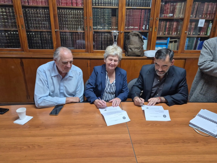 nella foto - Il Presidente dell'AFA Walter Zalcman, Jorge Minuto Presidente del Distretto ed Eva Szabo Presidente Panathlon Club Buenos Aires mentre firmano l'accordo