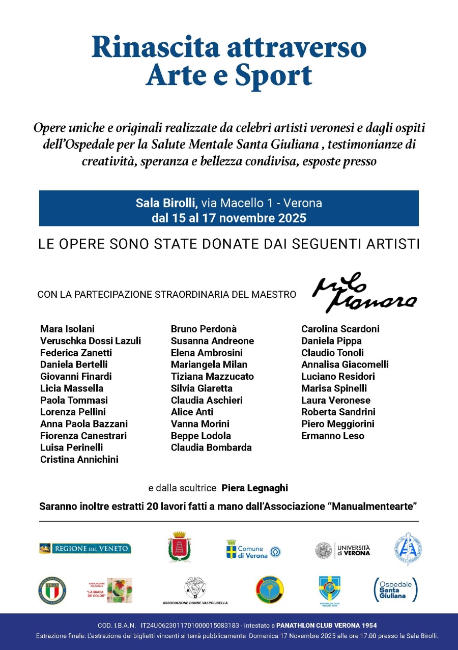 Il Panathlon Club Verona 1954 ha organizzato una lotteria di beneficenza intitolata "Rinascita attraverso Arte e Sport" a sostegno dell'ospedale per la salute mentale di Santa Giuliana.