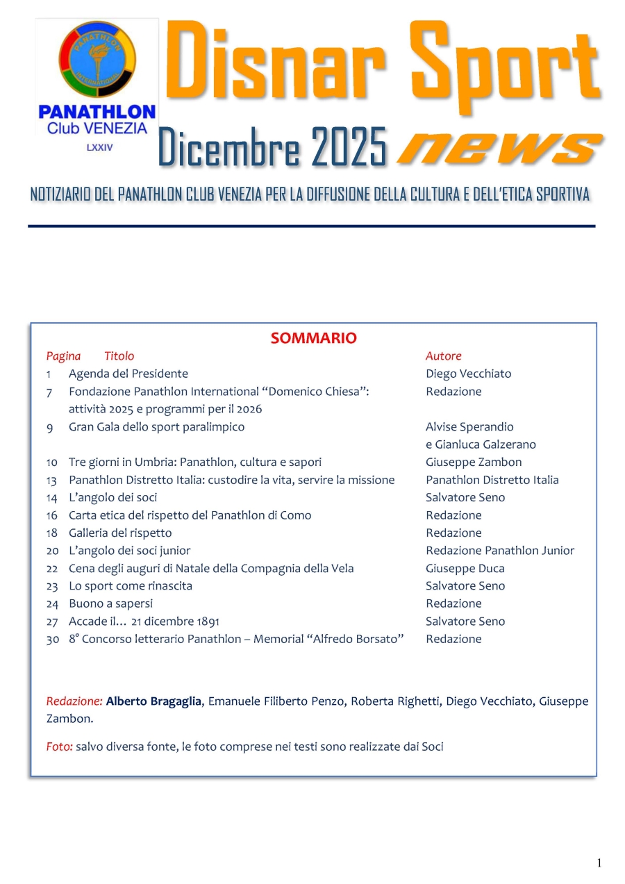 Panathlon Club Venezia- Disnar Sport Dicembre 2025