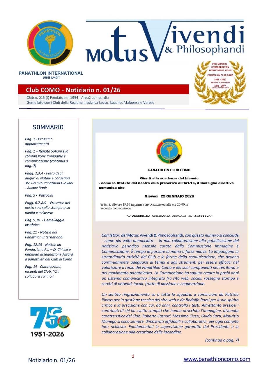 Panathlon International Club Como - Motus Vivendi & Philosophandi 01-26