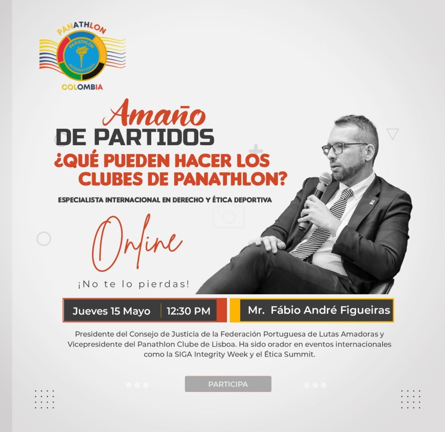 On 15 May 2025, Panathlon Club Colômbia held its monthly session—both in person and online—featuring a special intervention on one of the most pressing issues in modern sport: match-fixing. The session welcomed Fábio Figueiras, who is a member of the Culture, Research and Education Committee of Panathlon International and Vice-President of Panathlon Club of Lisbon and who has actively participated in the projects and discussion tables related to prevention of match-fixing.