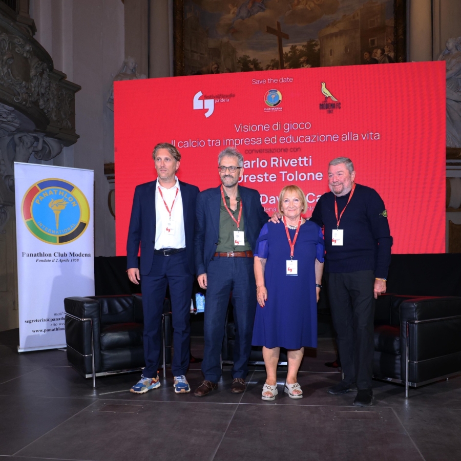 Ad applaudirli, oltre ai soci Panathlon e al pubblico del Festival Filosofia, tanti personaggi dello sport, della cultura e della società modenese, a partire da Vittorio Lugli ed Edith Barbieri, rispettivamente presidente e direttrice della Fondazione Collegio San Carlo di Modena, che la presidente del Panathlon modenese Maria Carafoli ringrazia per aver messo a disposizione la meravigliosa location: “Una serata che immaginavamo straordinaria, ma che ha saputo sorprenderci – continua la presidente Carafoli – grazie soprattutto alla bravura, all’umanità e alla voglia di mettersi in gioco del professor Tolone e del presidente Rivetti. Una pagina indimenticabile di grande cultura sportiva, la dimostrazione che dialogo, valori e cultura possono avvicinare mondi apparentemente distanti”.